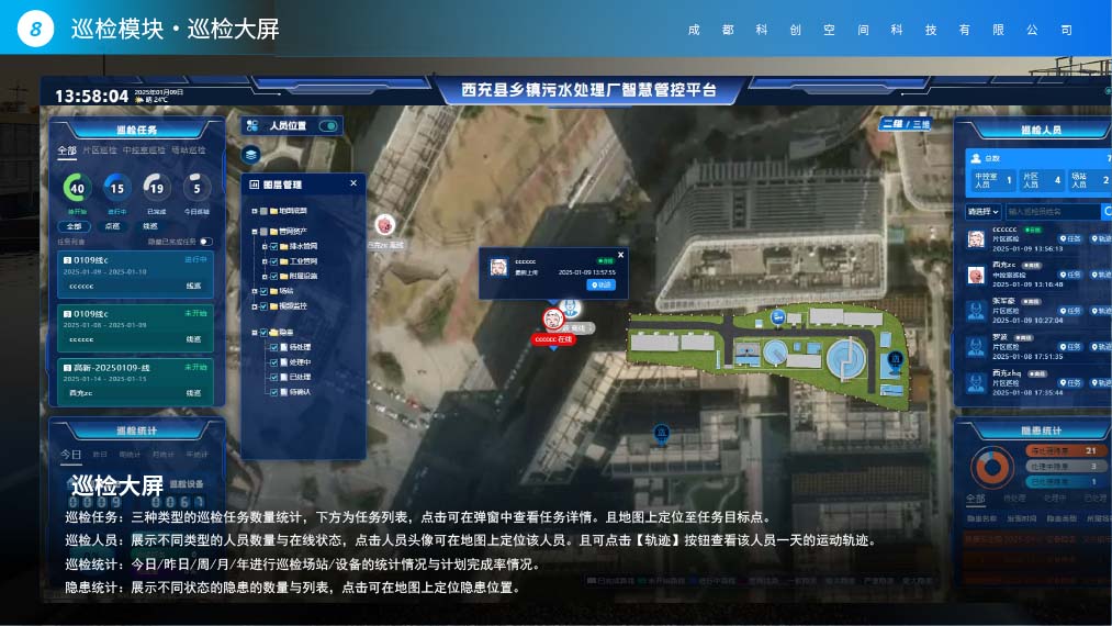 污水厂智慧管理解决方案以GIS管网时空信息为基础,全方位感知市政污水处理情况,通过“一张图”可视化管理模式,最终形成支撑污水处理管理部门各业务单元运行、管理和决策分析于一体的“污水厂智慧管理”信息平台。方案咨询首页KCGIS污水厂智慧管理解决方案KCGIS污水厂智慧管理解决方案系统截图系统功能图架构图示意图 列表界面功能展示巡检模块告警通知三维组态图地下开挖查看指定位置地下管道长度统计对地图数据进行统计后的展现,可以直观的看到管线长度管点统计对地图数据进行统计后的展现,可以直观的看到管点个数统计类别统计对地图数据进行统计后的展现,可以直观的看到管网的类别统计管网查询管网查询:属性查询,空间查询,周边查询,高级查询管网分析管网分析:流向分析,管点老化分析,管线老化分析,爆管分析,横剖面分析,纵剖面分析管网编辑管网编辑:管点属性编辑,管线属性编辑,数据导入巡检管理部分功能展示在线监测部分功能展示大屏展示客户端展现方式为PC端、移动端、微信公众号PC端部分功能展示移动端部分功能展示微信公众号微信公众号可收到实时告警消息 应用场景管网流量监测点实现自动化管网流量监测、计量管网压力监测点实现自来水管网压力在线监测管网水质监测点实现管网水质在线监测、泵站监控硬件部分遥测终端机RTU(卡控型)遥测终端机RTU/DTU智慧井盖专用设备窨井水位自动监测站智能测控设备4G/NB远传智能超声水表仪表物联网阀控水表仪表雷达液位计(小量程)传感器变频柜启动控制设备交流低压配电柜(GGD)配电设备科创优势纯国产GIS引擎拥有自主知识产权的KCGIS,在功能、 性能上与ArcGIS相同,价格却仅为其1/2提高管网管理效率实现管网数据的统一管理和共享,提高管网管理的数字化、智能化水平降低管网运行成本减少人工巡检成本,提高管网运行效率和安全性提升应急响应能力提供实时监测、分析和预警功能,提高应对突发事件的能力上线城市唐山市查看案例邯郸市查看案例南宫市查看案例滦州市查看案例遵化市查看案例成都市查看案例合肥市查看案例天津市查看案例更多解决方案智慧城市生命线实现对城市的供水、排水、燃气、供热、桥梁、管廊等各类设施进行实时监测,从而及早发现问题并解决问题,有效提升城市安全运行保障能力智慧应急以GIS系统为基础,通过综合数据汇聚可视化和模型分析功能,对突发事件进行快速定位, 对周边资源、周边风险、次生衍生灾害、专题制图等进行分析研判。智慧供水基于供水管网GIS系统,整合供水模型、DMA分区计量、SCADA优化调度、营收范畴等多方面业务应用,资产、人员、事件进行场景化精准管控,为客户减少漏损,实现降本增效。污水厂智慧管理以GIS管网时空信息为基础,全方位感知市政排水运行工况,通过“一张图”可视化管理模式,最终形成支撑排水管理部门各业务单元运行、管理和决策分析于一体的“污水厂智慧管理”信息平台。智慧燃气燃气管网GIS系统,整合燃气管网模型、巡线、实时在线监测等多方面业务应用,可视化、精细化的方式对整个燃气系统的生产、调度、应急和服务流程进行智能化管理,保障燃气运营管理安全稳定、科学可靠,有效提升燃气企业的业务管理效率与社会服务水平。智慧通讯通过运用物联网、云计算、大数据等技术,对城市地下综合管廊进行智能化管理和监控的系统智慧社区为提高服务效率、提升辖区内治安水平、降低犯罪率。通过无人机进行地图数据采集, 并且与公安系统对接。做到对辖区内的社区、楼栋、居民、工厂、事业单位等单位进行可视化展示以及有效的管控。智慧旅游通过整合地理信息技术,实现旅游资源的可视化管理、游客行为分析和智能推荐,提高旅游管理效率和游客体验。智慧交通以GIS系统为基础,通过物联网、智能分析、三维可视化技术与各系统的数据、实际业务场景融合,打造面向运营人员的有效支撑工具,实现智能交通全息的可视化感知。智慧农业利用地理信息技术,实现农作物监测、土壤分析和精准农业管理,提高农业生产效率和资源利用率。